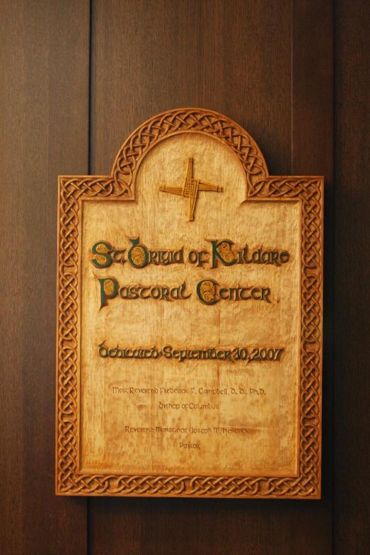 St. Brigid Church Pastoral Center dedication plaque, basswood, Dublin, OH